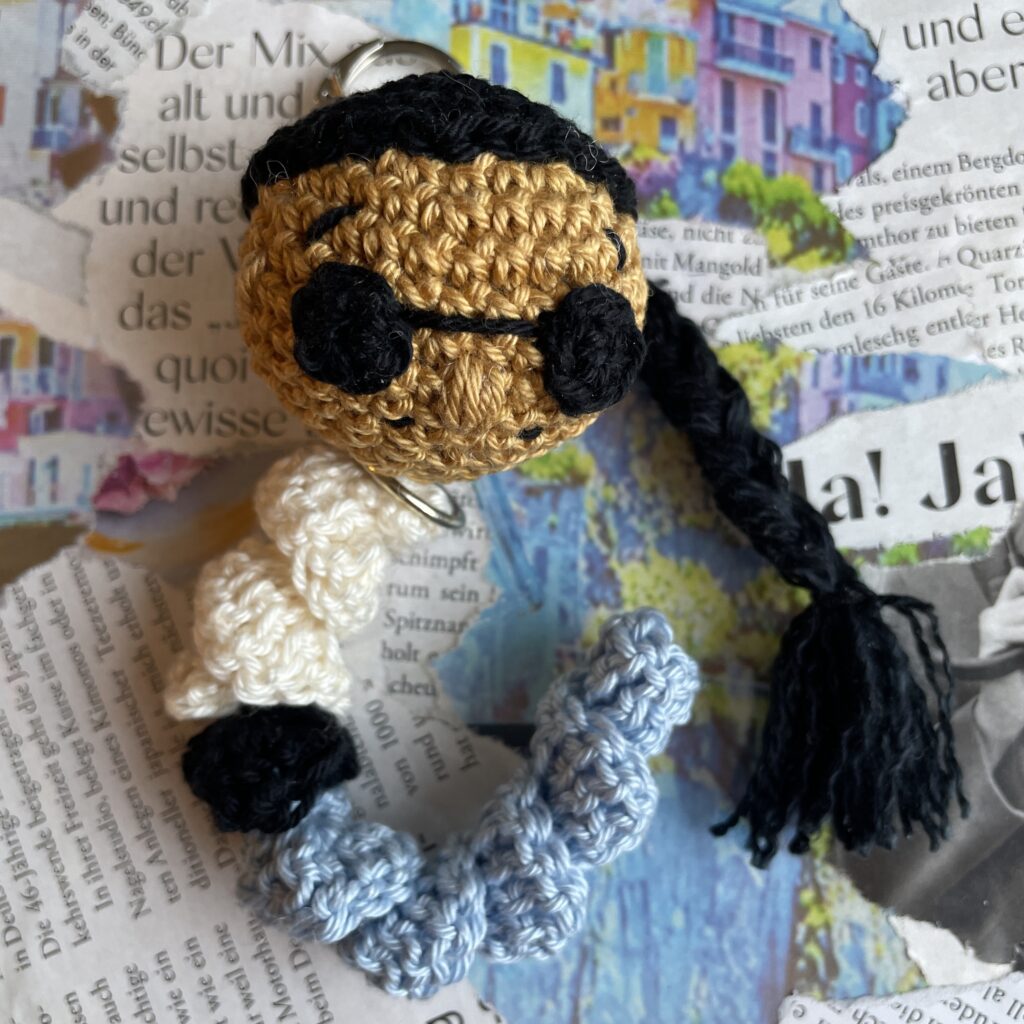 Das Grundprinzip ist wirklich einfach und wahrscheinlich kann man noch viel mehr Varianten daraus zaubern. Vorab sei erwähnt, dass ich keine feste Luftmaschenanzahl habe. Ich häkle immer um die 35-45 und zähle nicht mit. Jedes Würmchen ist einzigartig und sie dürfen unterschiedlich lang sein. Achte nur darauf, dass es keine Schlange wird, da sie kleine Begleiter für z.B. die Jackentasche sein sollen 🙂